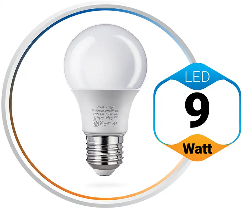 با رده انرژی A+ ، و بهره وری نوری بسیار خوب ، شار نوری لامپ حبابی 9 وات 750 لومن هست .